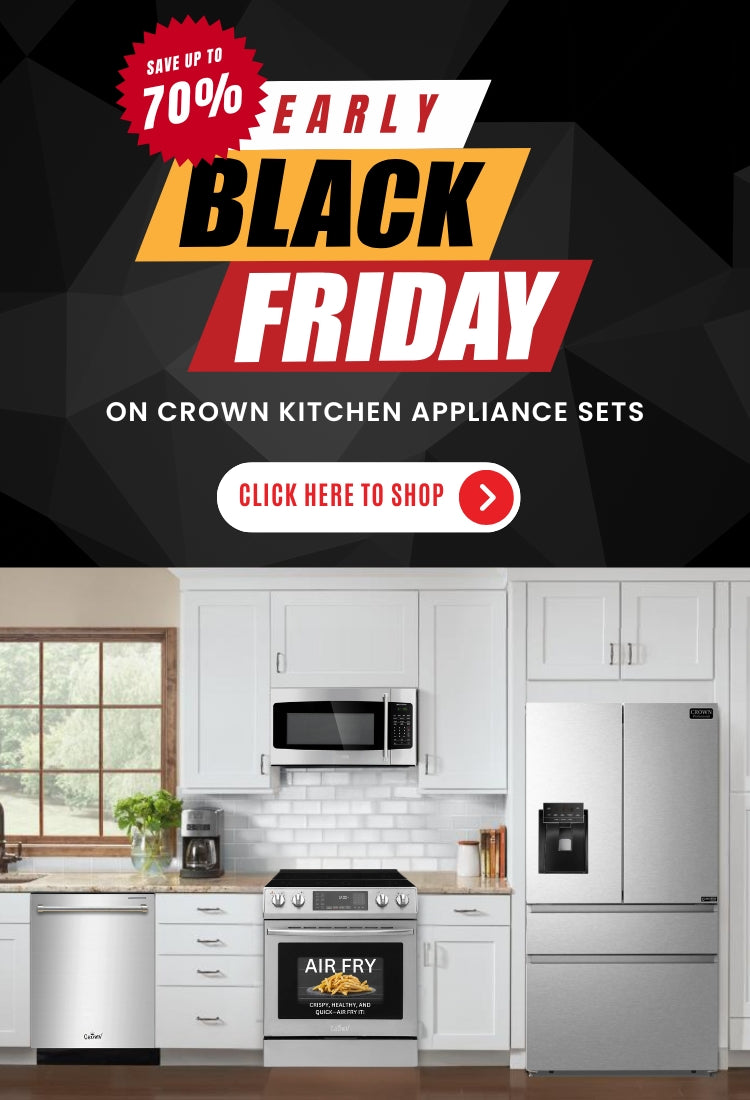 Crown 4-Piece Bundle Set: 30" Electric Range + 30" Under Cabinet Range Hood + 36" Fridge + (FREE Gift) 24" Dishwasher