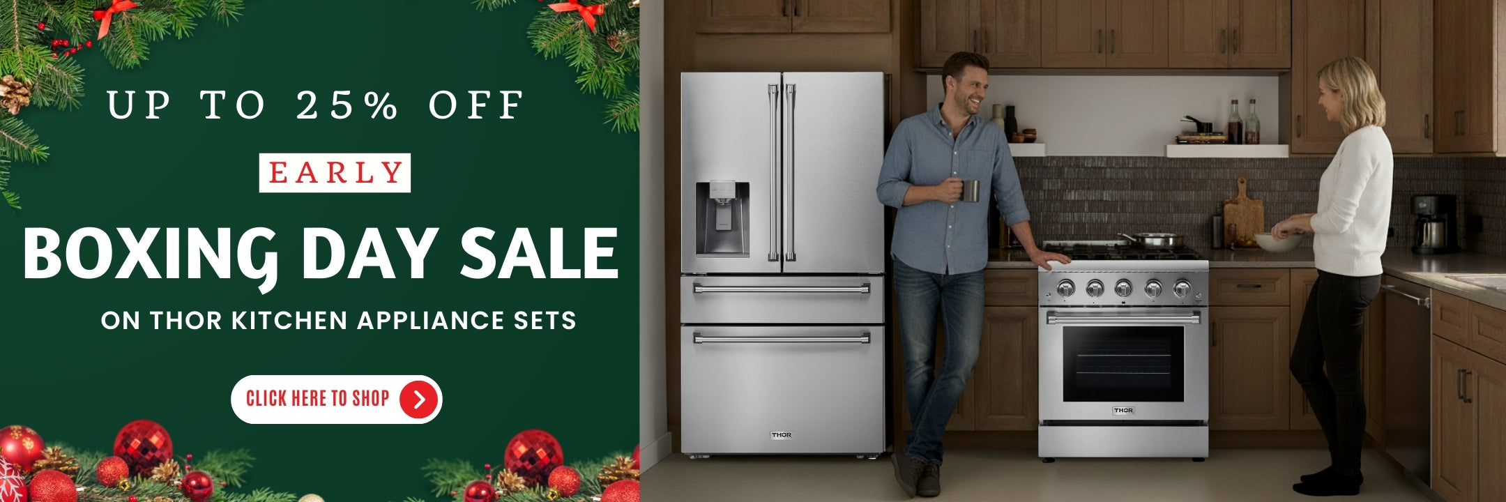 2-PC Thor Kitchen Bundle Set: 36" French Door Refrigerator + 36" Electric Range