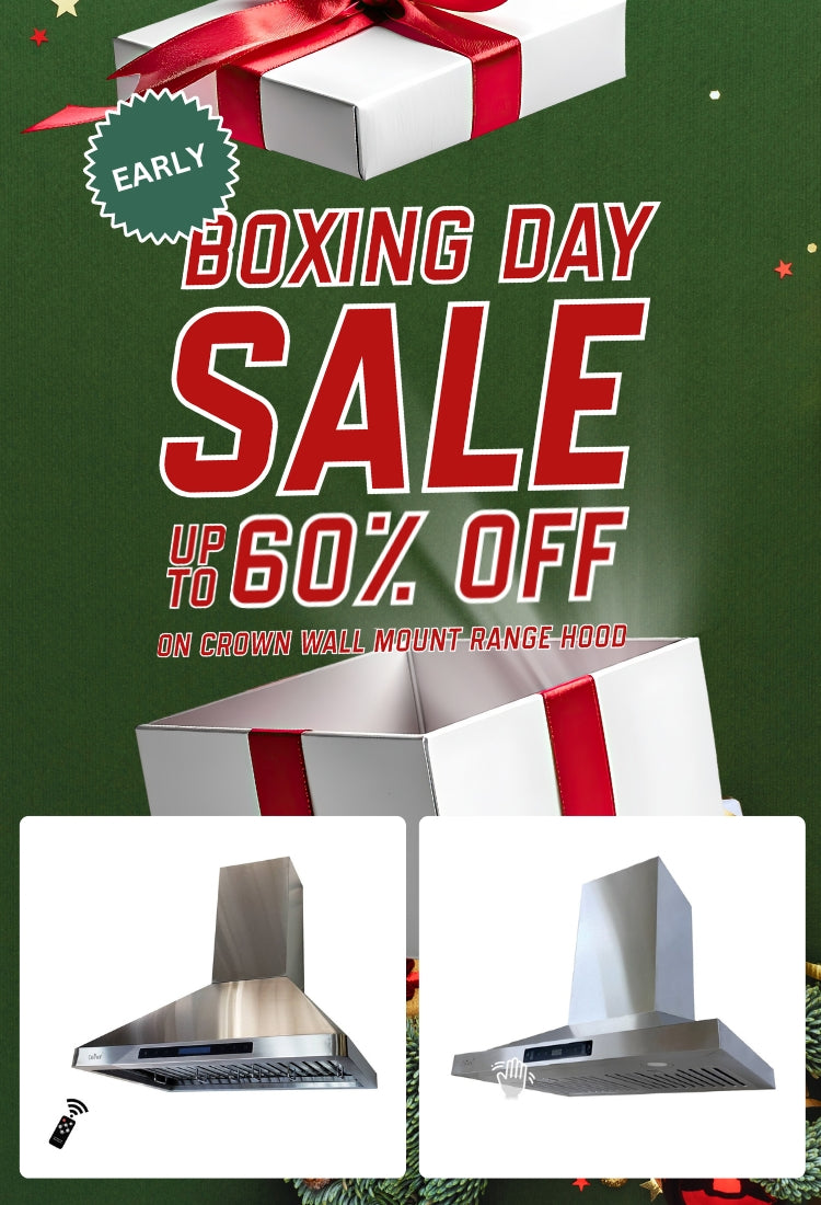 Crown 36 Inch 600 CFM Wall Mount Range Hood AFG-D/W-36