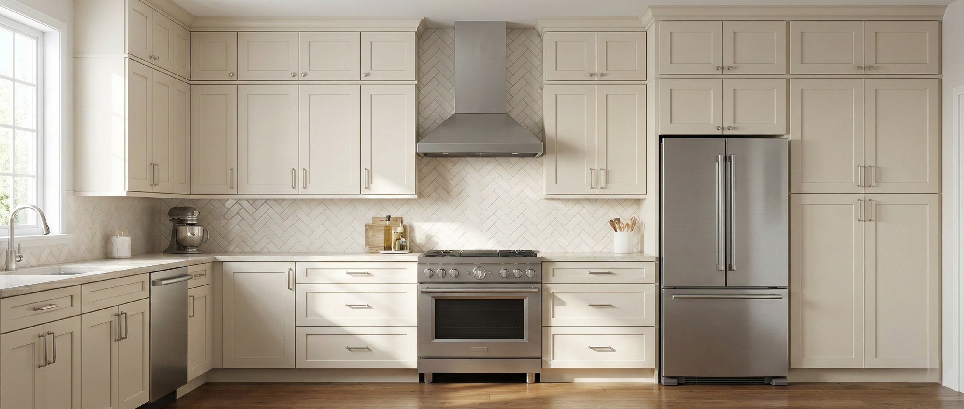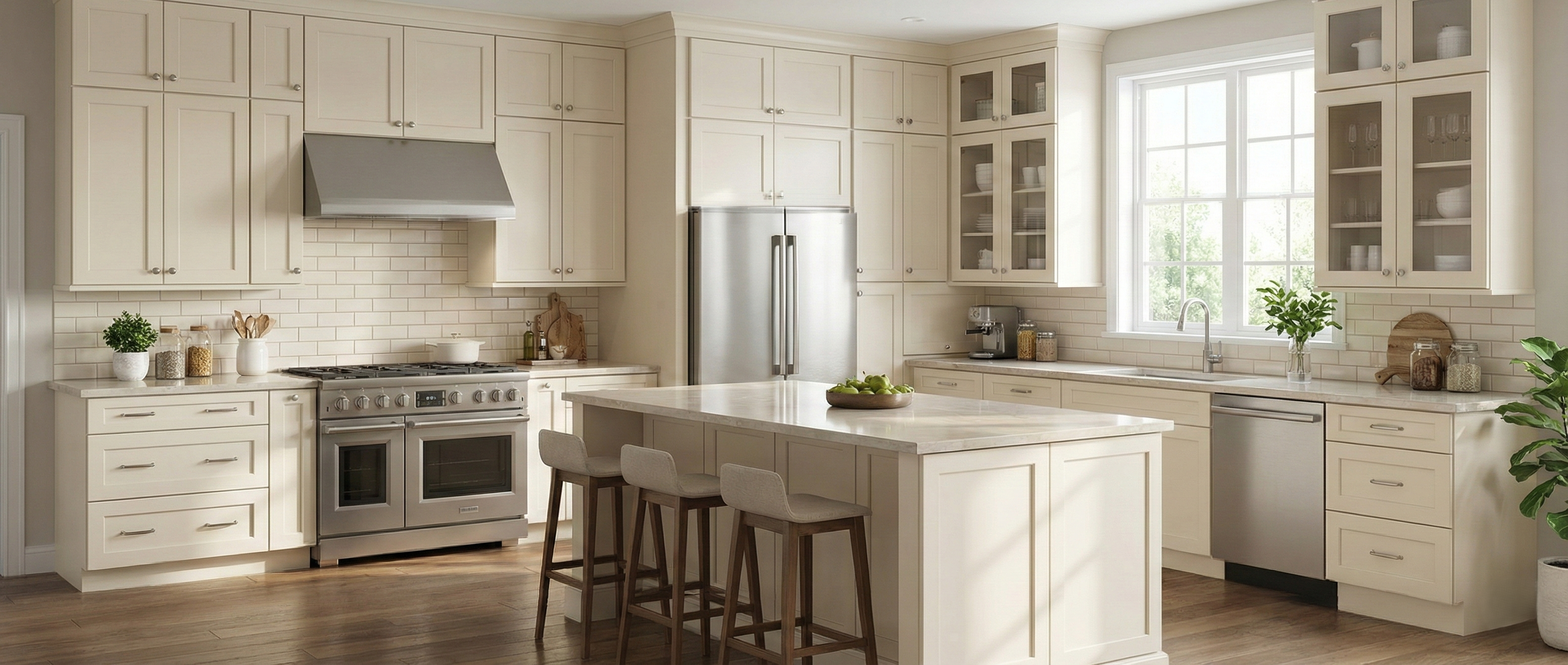PC189624 (MCS) Marino Cream Shaker Solid Wood Pantry Kitchen Cabinet