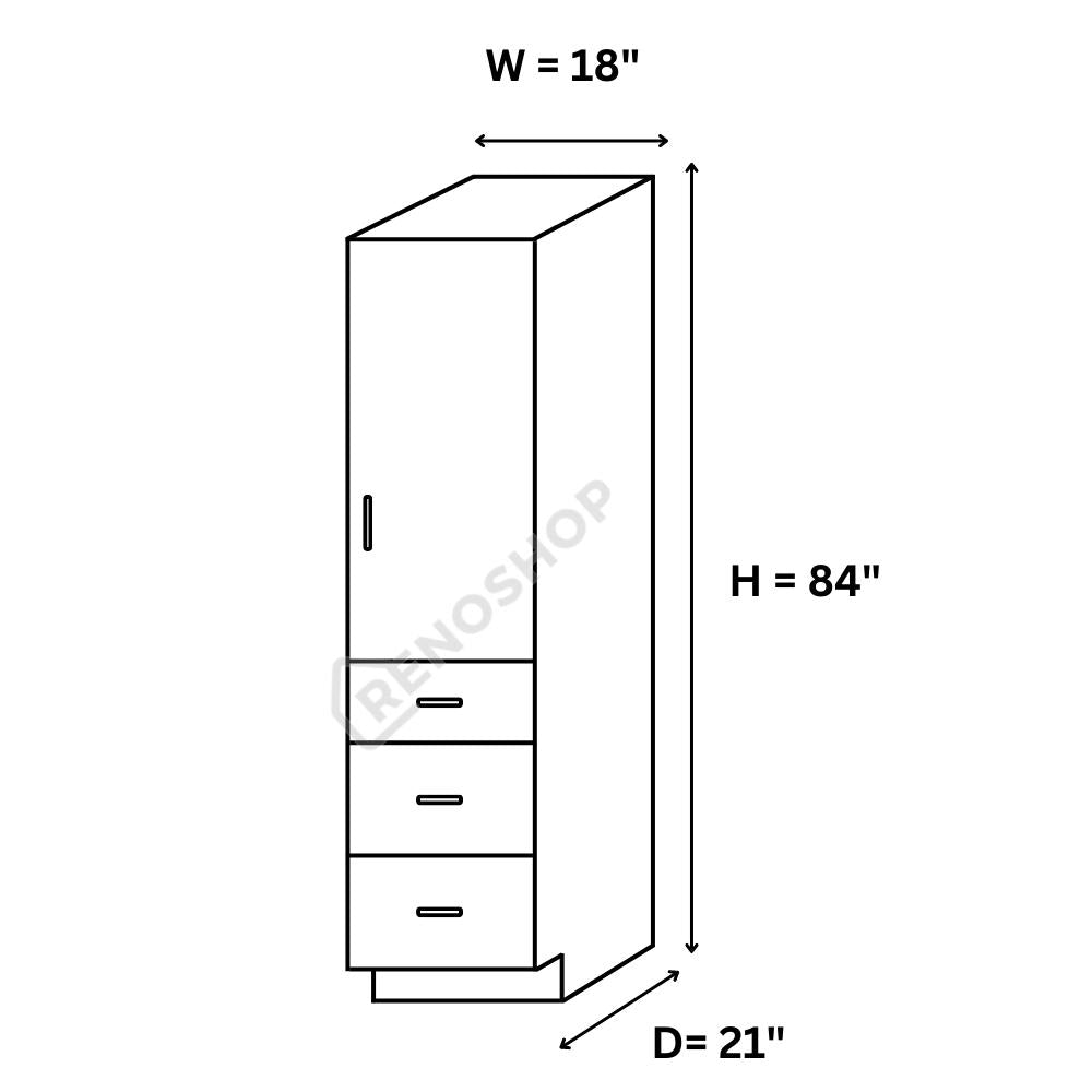 18 Inch Solid Wood Bathroom Linen Tower LC188421-WHS